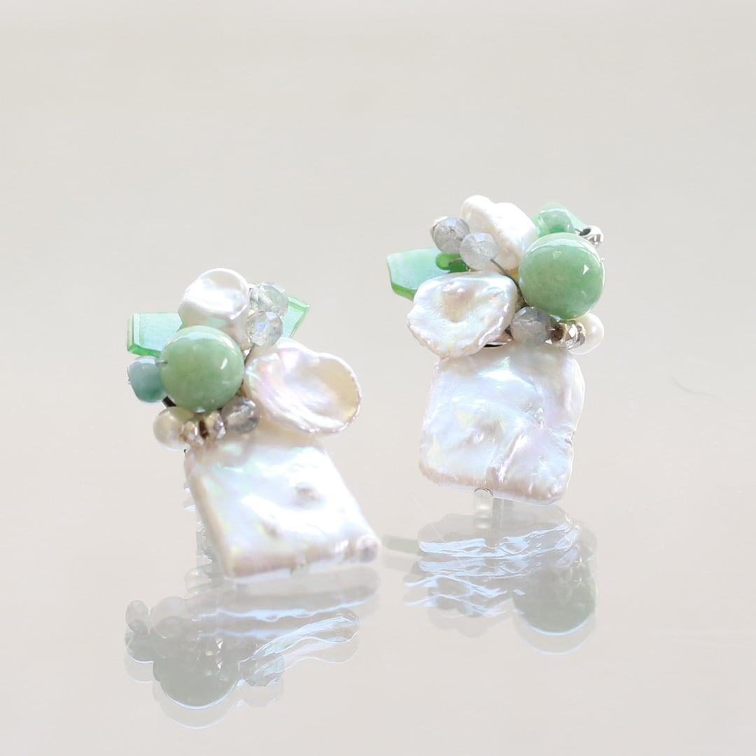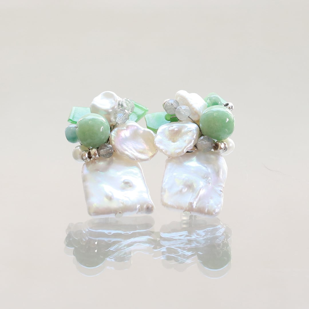 翡翠の存在感もありつつ、淡水パールの自然な色をより一層引き出してくれます!