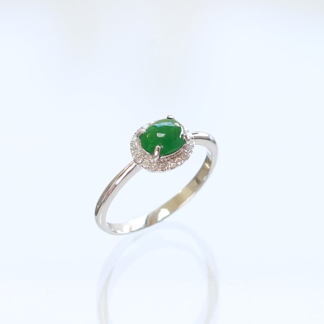 うる艶グリーン翡翠リング K10YG forest green jade diamond A貨翡翠 jd_rg2047