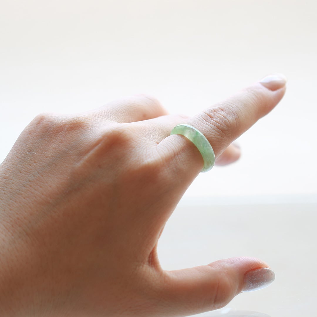【13号】水中に浮かぶ緑の絵の具のよう。翡翠くり抜き甲丸リング A貨翡翠 jd_rg2095