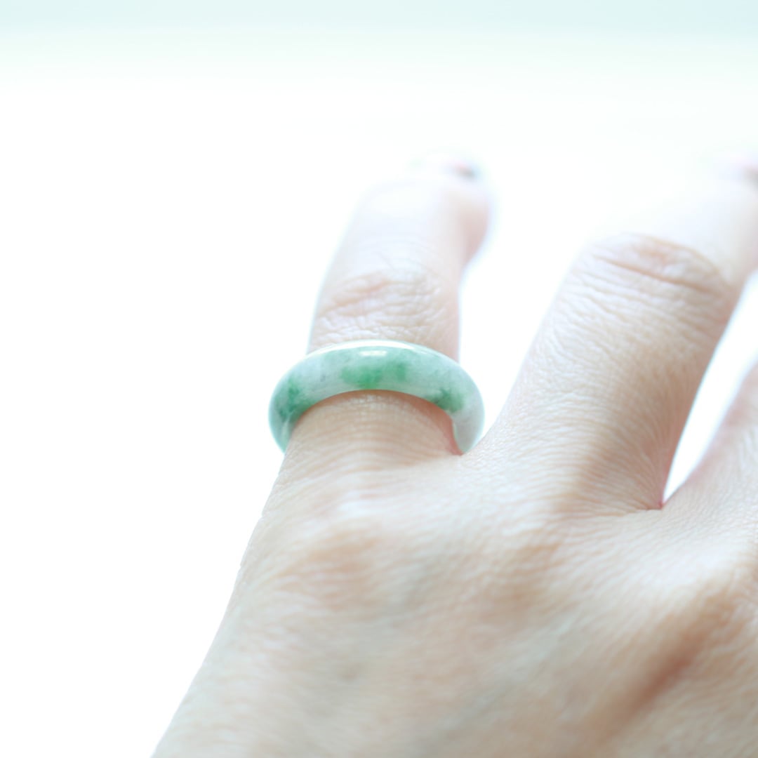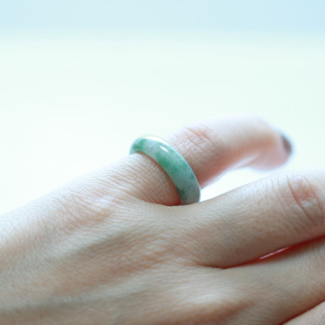 翡翠くり抜きリングは厚みがあるため、普段の号数より1〜2号ほど大きめのサイズをおススメいたします。