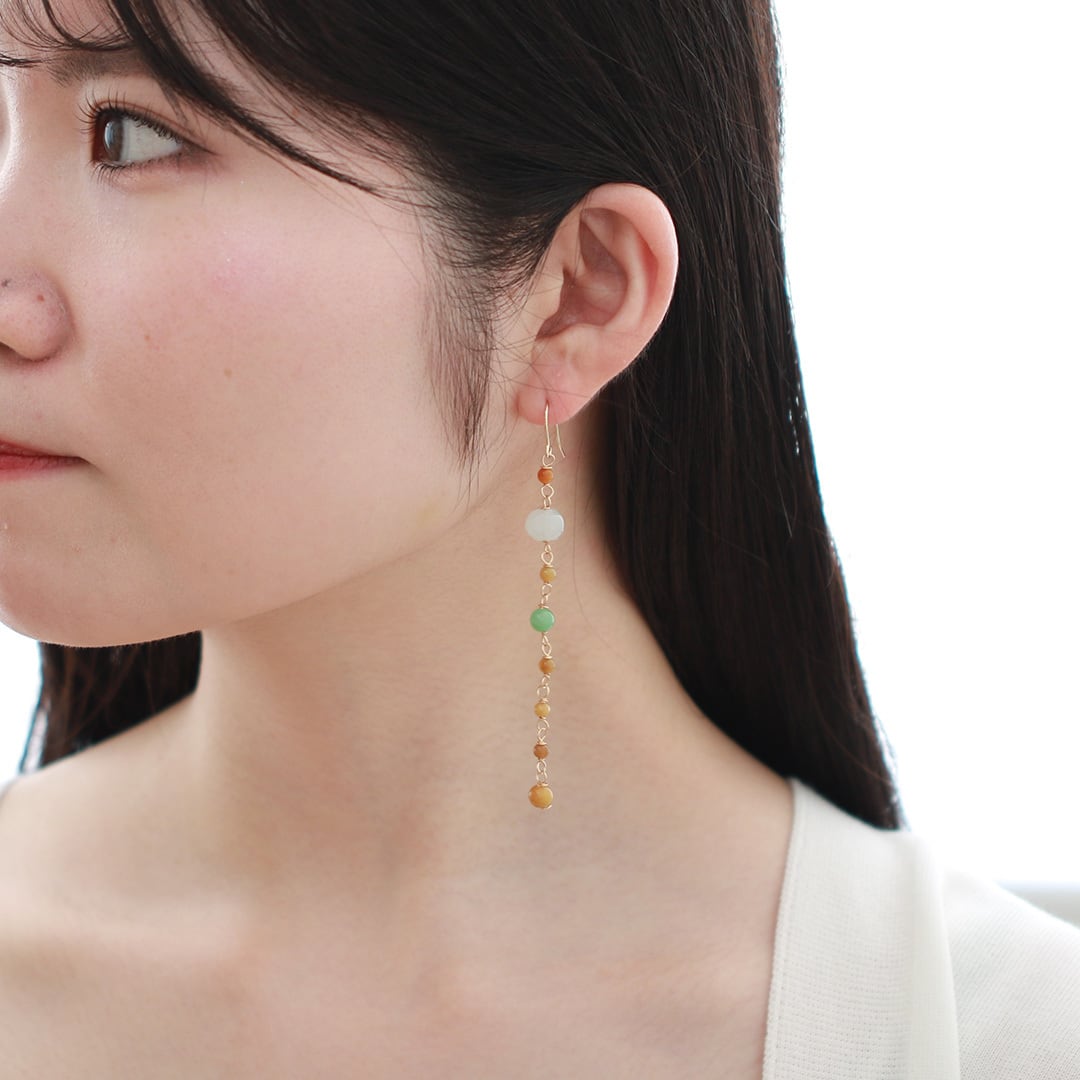 翡翠ロングピアス Y point malti flower r A貨翡翠 jd_mm1186