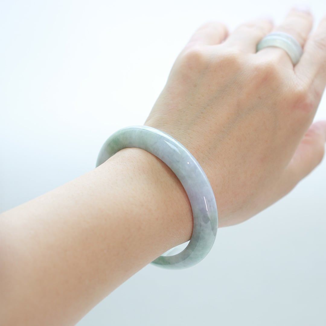 【内径 56.4mm】重厚感ある翡翠のバングル lavender/marble A貨翡翠 jd_bg1305