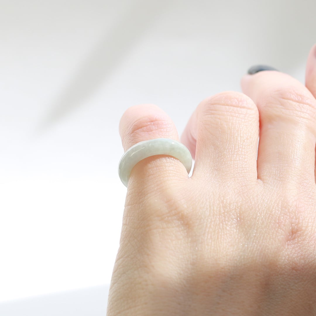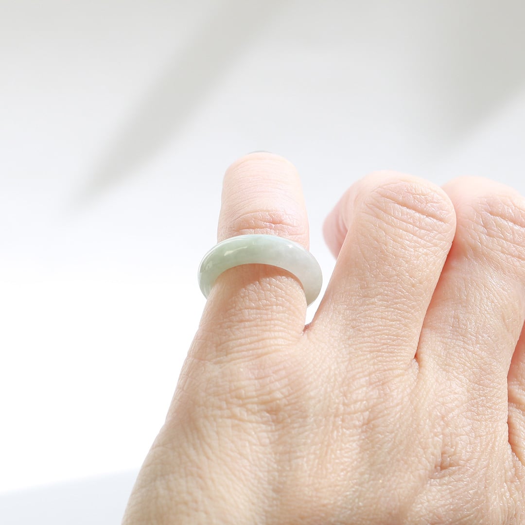 【7号】ホワイト系 翡翠くり抜き甲丸リング A貨翡翠 jd_rg2144