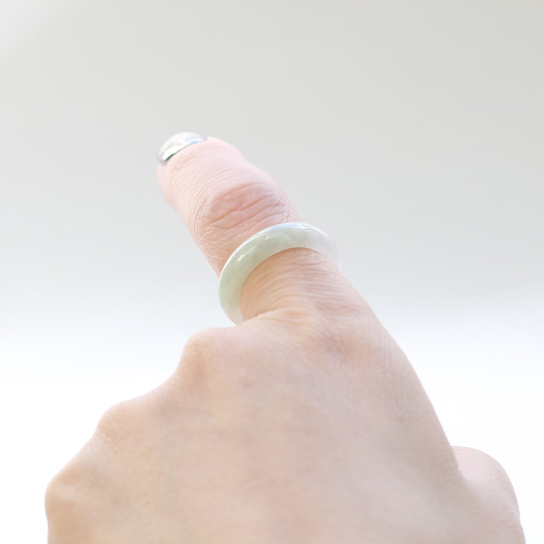 割れてしまった翡翠を接着などでお直しをすることは難しいため、甲丸リングを使用の際はこちらを十分にご理解いただき、ご使用ください。