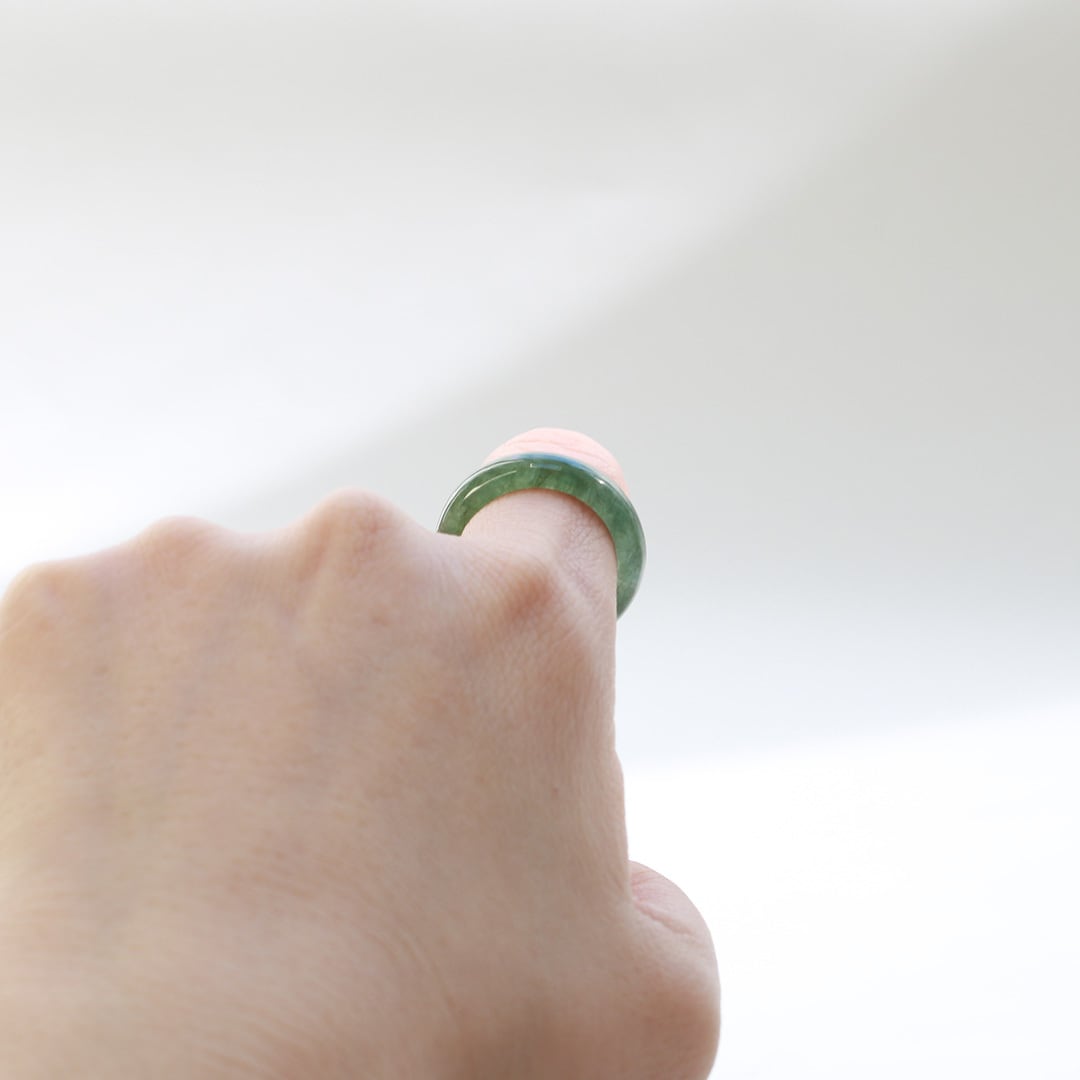 割れてしまった翡翠を接着などでお直しをすることは難しいため、甲丸リングを使用の際はこちらを十分にご理解いただき、ご使用下さい。