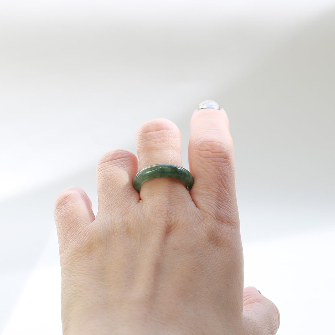【16号】深緑~透明 翡翠くり抜き甲丸リング A貨翡翠 jd_rg2179